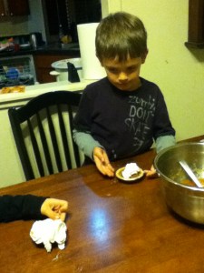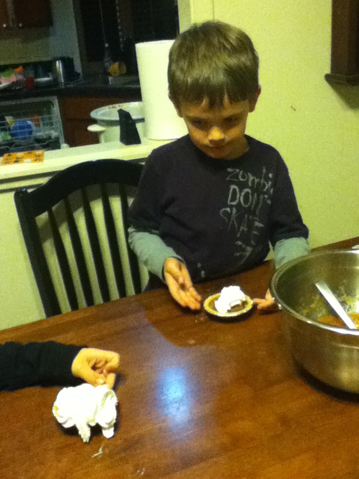 Kid’s went to dinner at Noodles with Fred. After, we FINALLY did the apple pie activity from Avery’s Buttercup curriculum. We have never had enough apples at one time before. Basically, it was just making applesauce and putting them in little pie pans and putting whipped cream on top. Avery did get into smashing the apples and did enjoy being a part of it and eating it. We still have apple sauce for tomorrow.