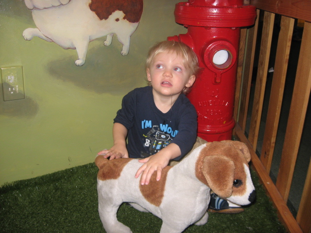 It is the first time I have had Avery at the Children’s Museum since the time in the summer when it was sort of my last straw about the fact that something was WRONG. And Nik and I both agreed that it looked a hell of a lot like Autism of some sort. Besides the delay in language, and the fact that he just didn’t seem to understand anything we said, he just didn’t play like a normal kid. He sort of obsessively went back and forth between two similar activities, most involving wheels or steering wheels. He didn’t seem to care about me, the other kids, or much of the stuff going on around him. He was very closed off, almost impossible to communicate with and just operating on a really simplistic and perseverating level.