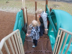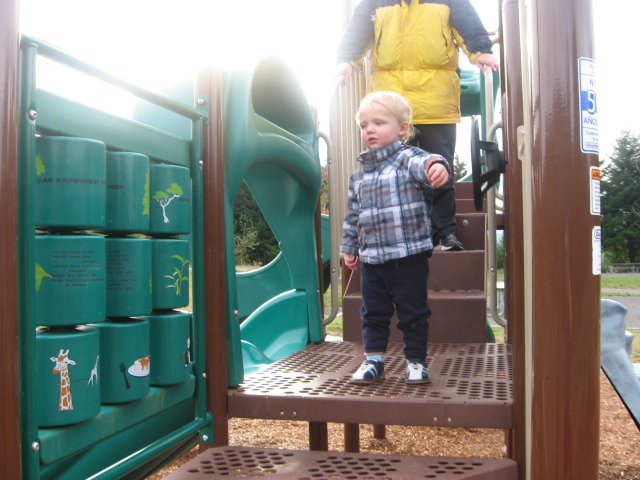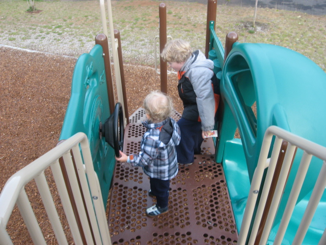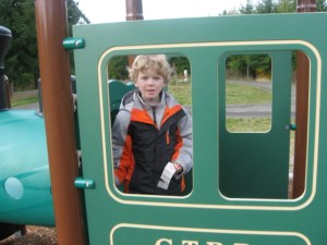 Tot lot was a train engine. Big kids liked this one better and Avery liked the big one better because it had a steering wheel.