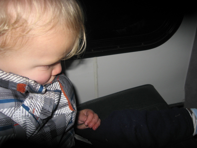 Avery, asleep on my arm. It doesn't seem weird to hold him on the city buses without a car seat, I do it all the time. And even though transit and cabs are exempt from carseat rules, it always freaks my out a little to have him there with no carseat. He has a lap belt here. He was probably fairly safe, but still...