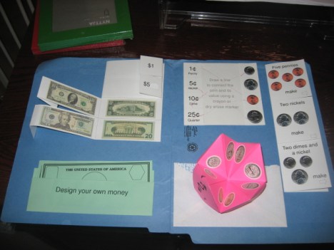 - Math-they made lap books about money and counted in 5s and 10s