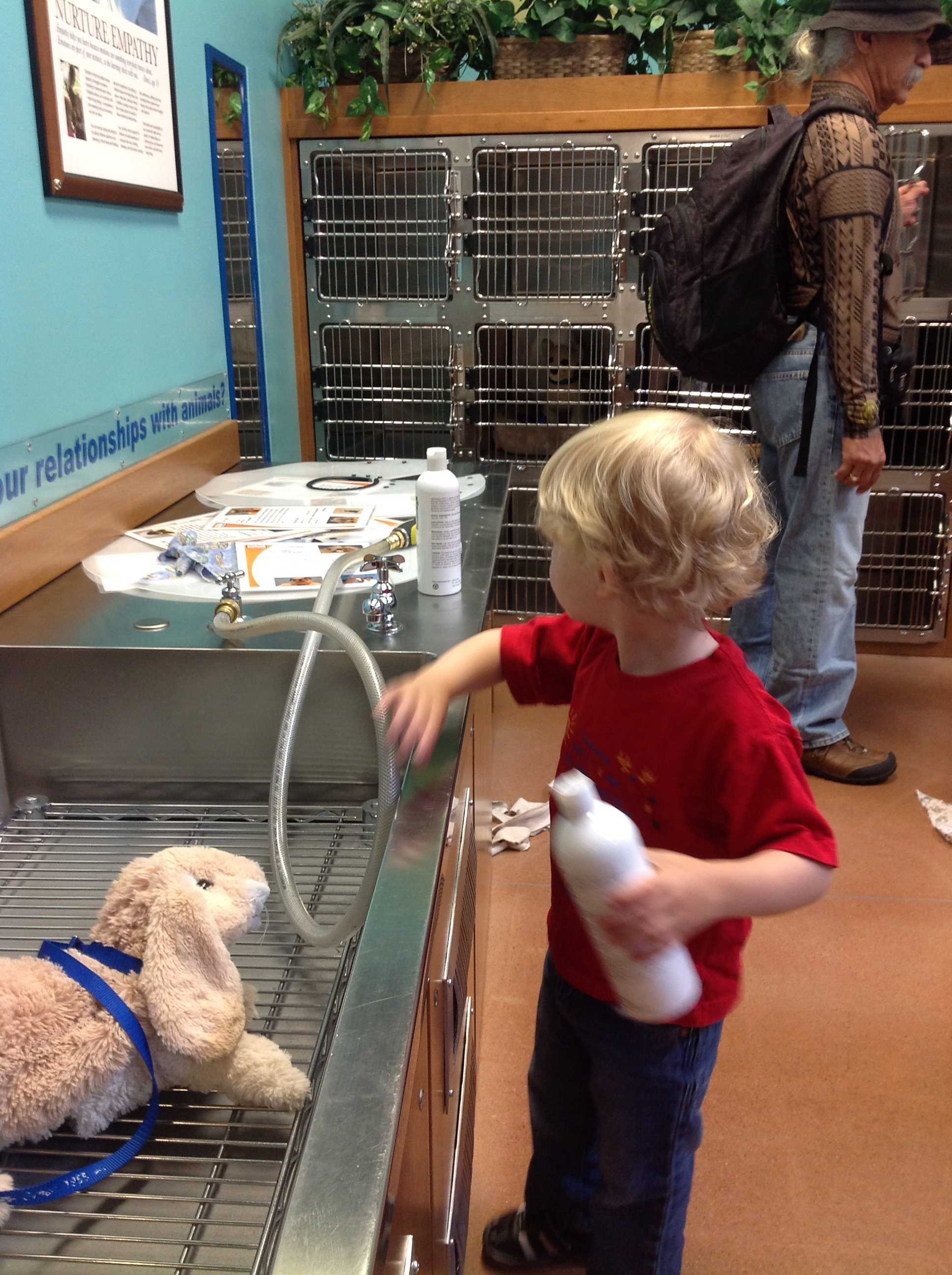 Avery giving the animals a bath in vet hospital.