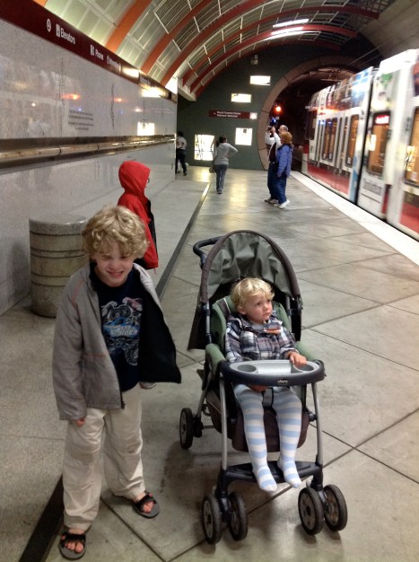 Heading home. Notice Avery in pajamas because he was so wet I knew he would be miserable in that cold, damp tunnel and that’s all I had.