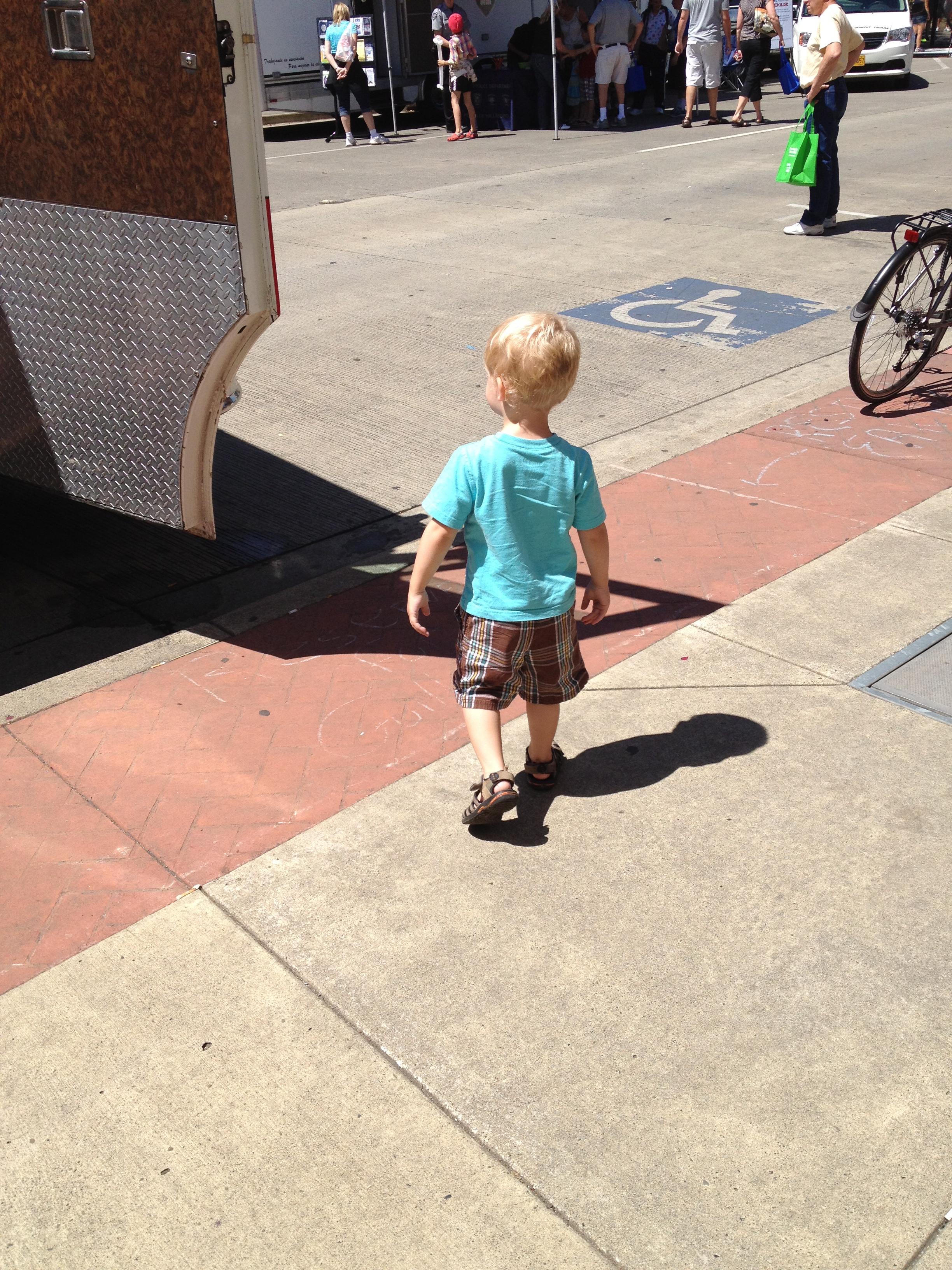 - Avery and I went to look at firetrucks while the big kids were playing in the inflateables. He was a bit intimidated to go inside.