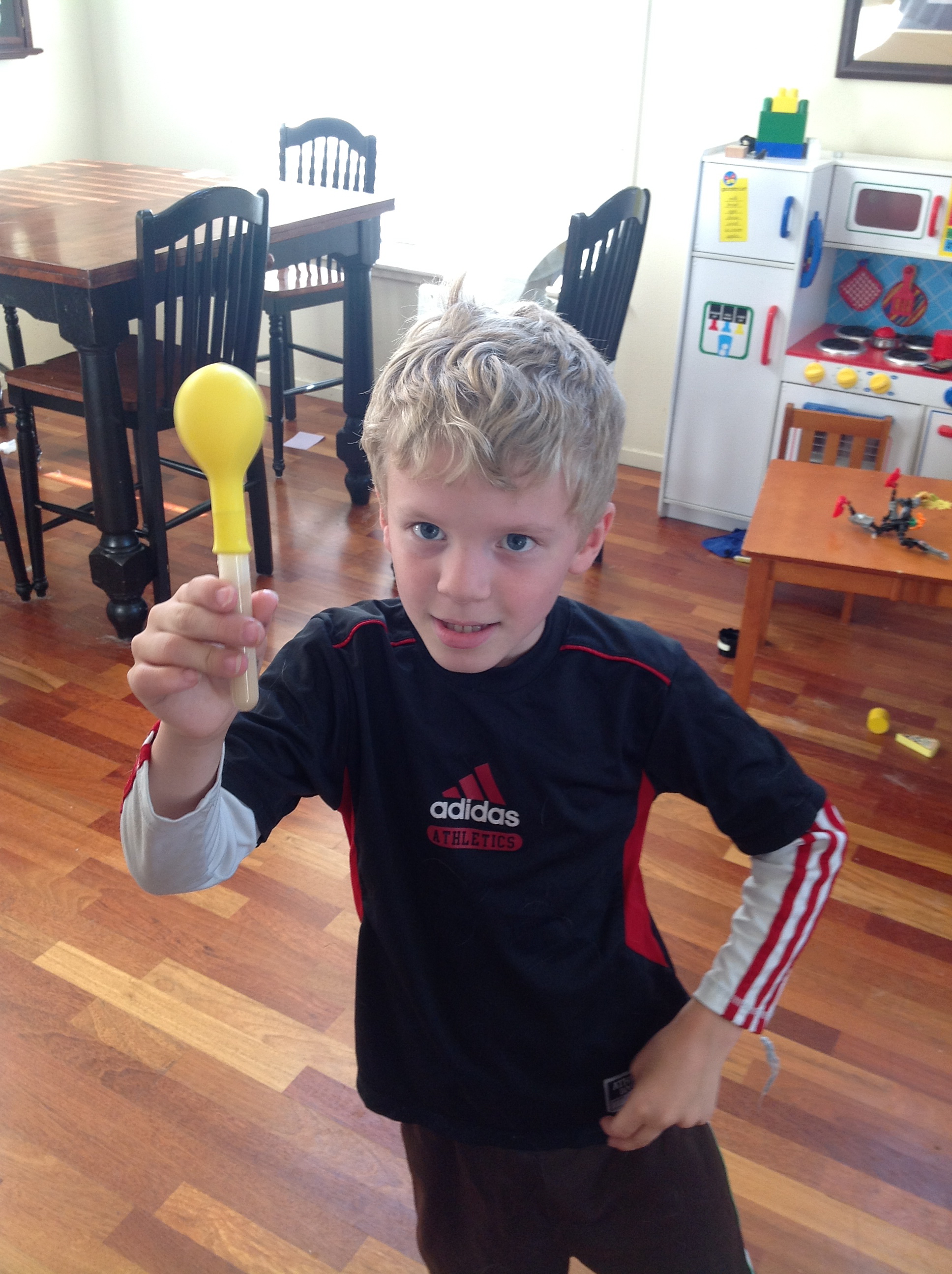 Naim with our yeast experiment. The other yeast solution we made was in an open dish, and foamed all over the place. So this one we decided to catch the foam in a balloon.