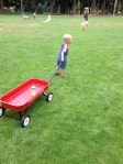 - Of course, we have to pull the wagon on the concrete so we can enjoy the incredibly loud noise the wagon makes.