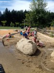 The street was closed for new blacktop or whatever they call it, so we were not able to get to the MaX without going way out of our way, so we went to 53rd Ave. Park for a picnic and playtime. Big kids spent the most time making an elaborate dam, river and lake system in the sand with some other kids. Avery and I wandered around and whined a lot. Avery has been an absolute monster this week, and then in the afternoon he started throwing up. I am starting to suspect a peanut allergy now. He was eating peanuts in the morning and sneezing the entire time. His poop this week has been gross and seedy, and he has been doing that type of “play” where he just wanders around and doesn’t really engage in anything and is constantly cranky. The only thing that I can think of that has been different this week is that we have been eating out of this jar of trail mix that is heavy on peanuts. (Also raisins, m and m’s and walnuts.) He has had raisins a lot with no problem as well as grapes. peanuts we don’t have so much, and that is the next thing on the “most likely allergens” list. Sigh. This kid is a challenge. I am trying to remember if the last time he threw up, we had nuts or something, and I don’t remember. But both times, he was the only one who got sick, which means it is less likely to be a virus or food poisoning. Friday (when I’m actually writing this) he did not want to get up and so I kept him home from school, which means that big kids and I did not get school done, either.