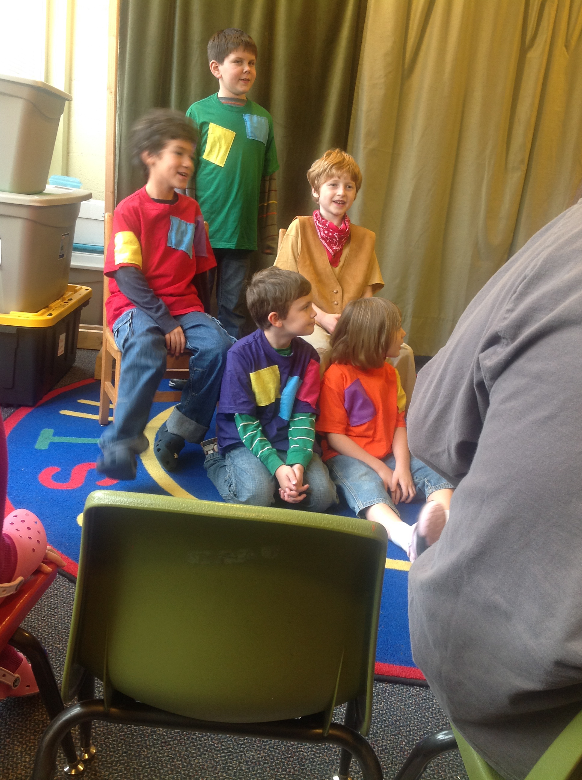 - They took Fred and Susan to the dress rehearsal for the play, in which Hillary had my dad speak about working for the railroad (hee!) The rehearsal looked a little chaotic, but ok. The last week they did the actual play and I thought it was so much better than the dress rehearsal. They did really well and Naim did well remembering his lines and to his solo song, which was about Daniel Boone. Aaron was a little goofy about it, but looked like he was having fun. They had a little reception after. Hillary did a really good job making it all professional with programs and stuff. Anne-Maj and Krister went with Nik and I.