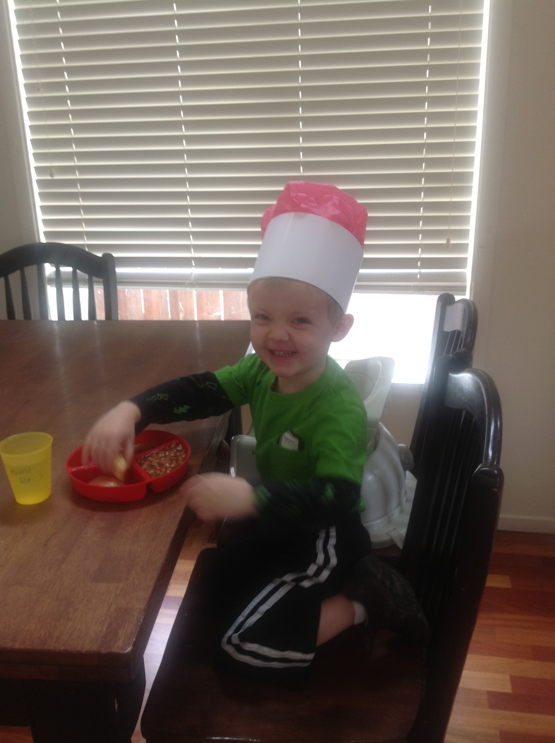 Avery went to ECSE today, and came home with a Very Important Hat. He wore it all day long and was very careful to put it away when he went to bed.