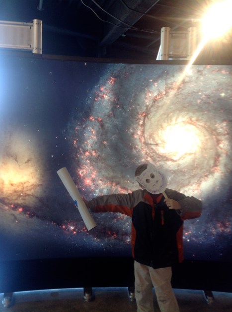 He has his poster and Aaron’s picture rolled up, he was trying to look like he was floating in space.