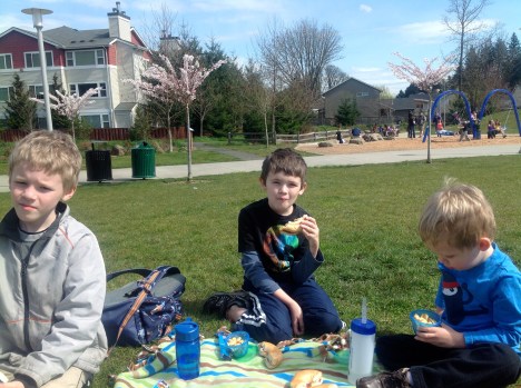 We had to have a picnic with a blanket on the ground because that is the way Pokemon does it, I guess.