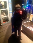After we went to Mythbusters! The Explosive Exhibition! Then we spend a lot of time in the Life Sciences lab, which we have not done a lot of in the past. Naim and I went through the fetus development room (which you are not allowed to photograph.) We had gone before, but I think he was too young to get that they were real fetus corpses before. He kind of got a little wide-eyed about that this time. We spent some time in the life science lab with all the aquariums of animals. Then we flosted across to the earth science hall and they spent some time in the watershed lab.