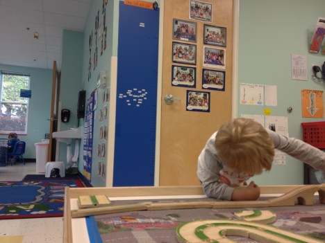 At the train table, of course.