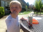 We went to M.C.’s birthday party at Shute Park and checked out the new playground equipment and water/sand feature. We also went to the duck pond when our haircut errand didn’t work out. We also took Sully to the dog park.