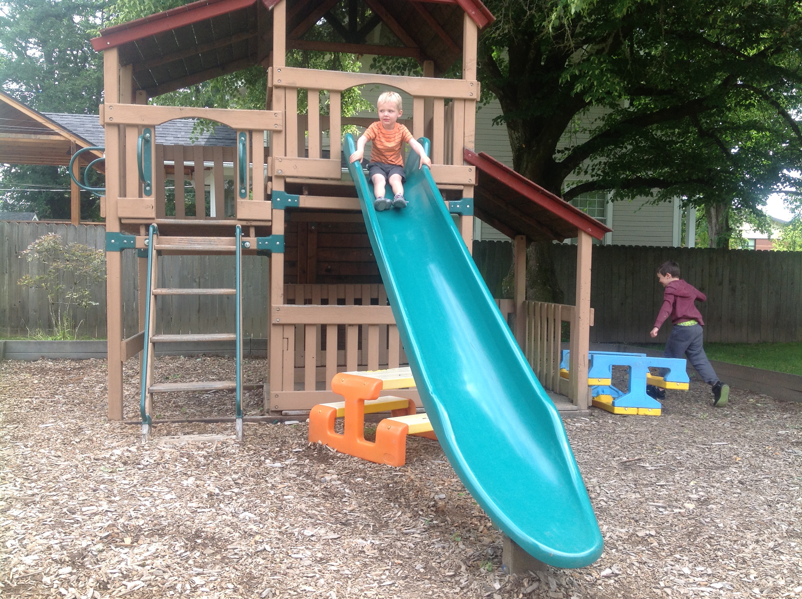 Nik had to work on Saturday, so we got baths and stuff done and then just went to the park down the street where their was a lemonade stand set up. So I had the kids work out how to give $5 and get 50 cent lemonade and cookies for 4 people and how much change to get back. Then we just hung out until Nik met us in the park.